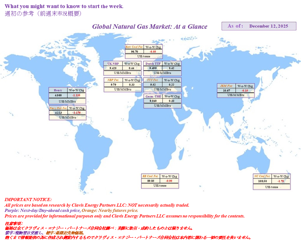 Clavis Global NatGas Market; At a Glance (as of December 12th, 2025)