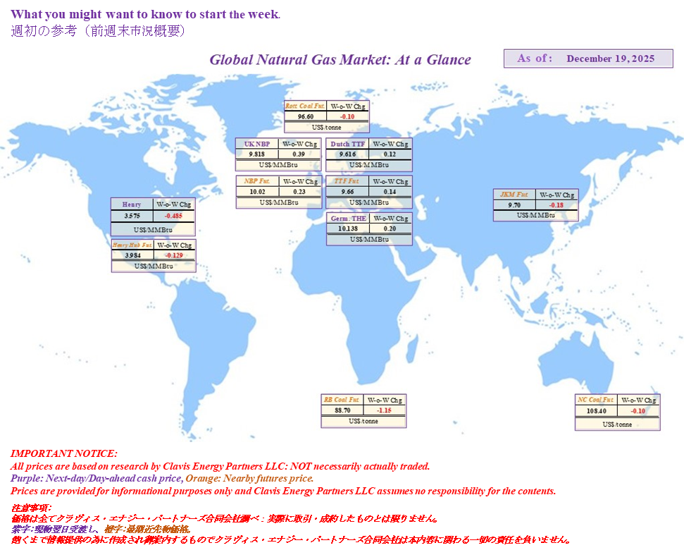 Clavis Global NatGas Market; At a Glance (as of December 19th, 2025)